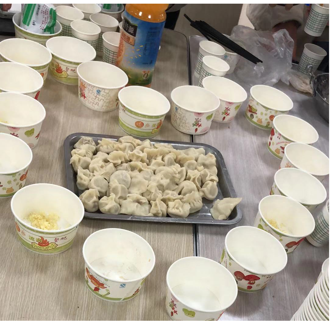 下午,学生会纪检部、秘书部、文艺部等部门的二十余人在餐厅二楼借用了场地,拿着事先准备好的饺子食材开始行动。大家分工明确,合作默契,有条不紊的拿皮包馅,一个个形状各异,玲珑别致的饺子在大家手中诞生。热气腾腾的饺子在一片欢声笑语中出锅,同学们围坐在一起,其乐融融。活动在友爱温馨的氛围中结束。