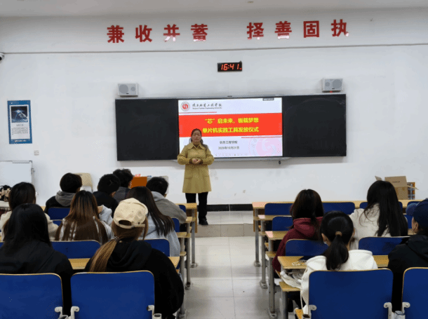 电子信息系潘虹主任表示,单片机技术是电子信息领域嵌入式开发、智能硬件设计的基础,开发板为同学们提供了提前接触行业技术的机会。希望大家利用课余时间积极开展实验创新,在嵌入式系统开发、智能控制等方向积累实践经验,提高自己的实践操作能力。