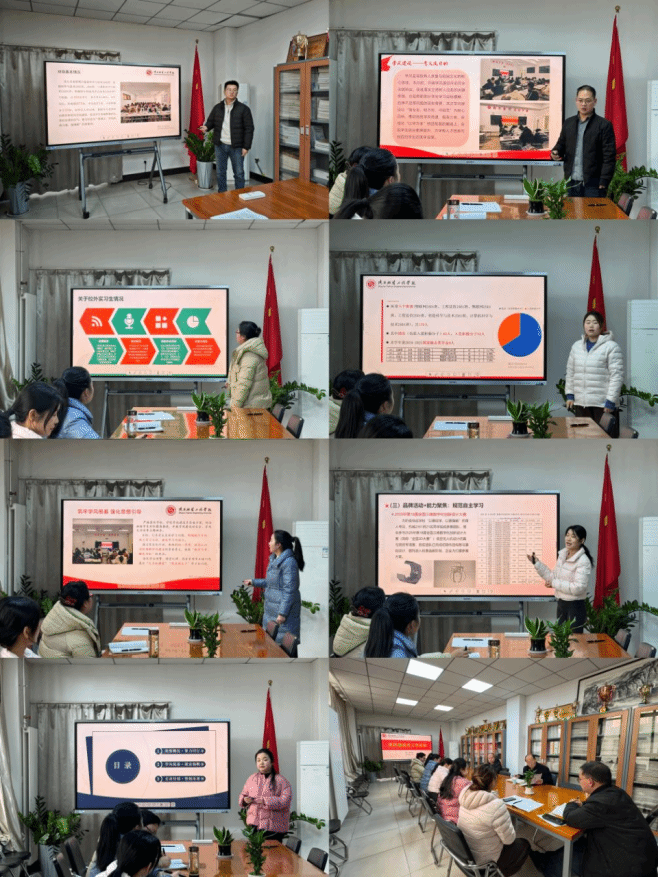 本次总结会系统梳理了学风建设月期间的各项工作。会上,七位辅导员依次进行了内容丰富、重点突出的专题汇报。刘力嘉老师首先就学生就业情况作了重点分析,为后续工作的精准施策提供了数据支持;王蒙老师围绕思想引领与党建工作,阐述了如 何以党建带动学风建设;刘西珍老师详细汇报了安全稳定底线工作与学业帮扶的具体举措;刘子瑊老师聚焦学生心理健康,强调了心理育人对学风建设的基础性作用;任甜甜老师介绍了学业规划指导的开展情况,引导学生明确学习目标;舒浪老师分享了“一对一”精准帮扶和“优秀学习笔记”评选等特色活动的显著成效;崔燕老师则就实习学生的安全管理问题进行了专项汇报,确保实践教学环节安全有序。