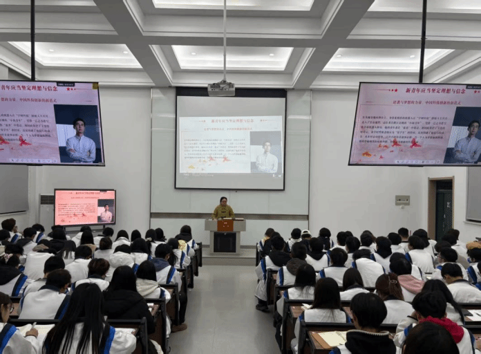 会议伊始,学院团委书记崔燕以“明使命 知内涵 做新时代有为青年”为主题,紧扣“青年与时代同频”主线,号召学子将专业所学与国家需求结合。她指出青年时期是学习的黄金时期,也是成长的关键时期。并对大家大家提出三点希望:一是要以 “求知若渴” 的态度筑牢思想根基,二是要以 “知行合一” 的自觉践行团员使命,三是要以 “久久为功” 的坚持追求更高目标。