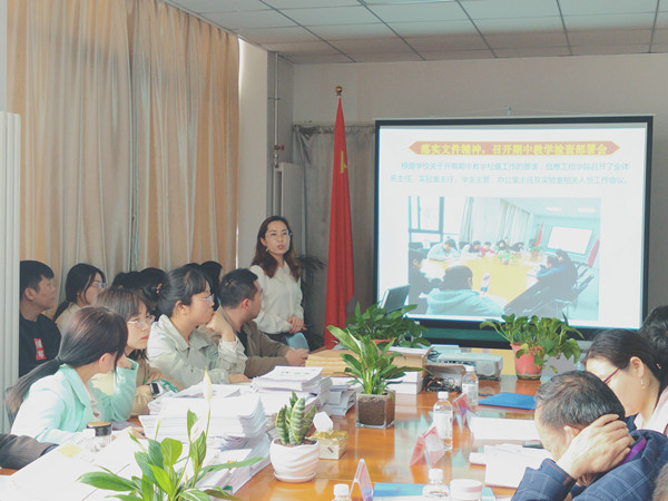 首先,教学院长甘霖对检查组的到来表示欢迎,并就学院迎接期中教学检查所做的工作进行了汇报,随后,院长助理党小娟就信工院期中教学检查情况做了具体讲解,按照学院要求各系主任就各个系开学以来教学方面的特色和亮点进行了汇报。整体教学检查涵盖了课程思政实施情况、日常教学运行的检查与监控、教师教学设计、教研活动开展、试卷评阅、实验实训开展、实习教学、毕业设计(论文)等内容。