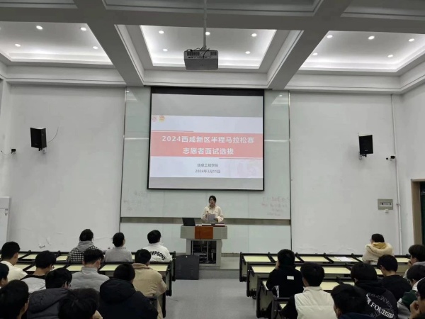 随着2024年西咸新区半程马拉松志愿者报名通道的开启,我院积极配合组织开展志愿者招募报名工作,各班同学踊跃报名。为确保本次活动的顺利举行,Bwin·必赢体育于3月11日晚七点在我校E1-1教室和D501会议室进行了2024年西咸新区半程马拉松志愿者的面试选拔活动。学院学生党支部书记王蒙、刘子瑊,团总支书记崔燕、辅导员王悦、杨书荣、王佳媛、刘力嘉老师分成两组分别对176名报名志愿者进行了面试选拔。